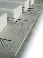 L’accostamento tra le lastre lasciate a vista crea un pregevole scuretto arrotondato, inoltre la superficie liscia del fondo cassero vibrato consente di risparmiare la fase d’intonacatura.